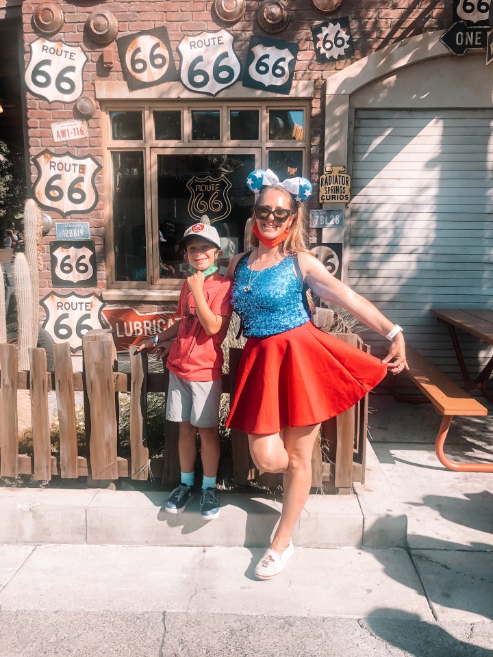 Okay for the most part, we had a really great day, but riding Radiator Springs at the very beginning of the day was the biggest mistake I could have made. I think everyone at the park had the same idea as I did…which meant the line was 250 minutes long! I honestly was shocked but I was equally worried that the line would be even longer as the day went on, so we stuck it out. It actually worked out okay because B got to ride a couple of rides while I waited in the long line. But, in hindsight, I wish we would have started at the back of the park and worked our way forward. The wait for Radiator Springs the rest of the day was only 60 minutes long…woops! Well, you live and learn!